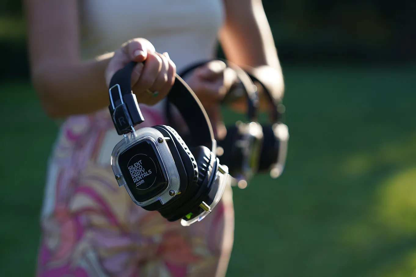 Get crisp, immersive sound with our silent disco headphone rentals. Each set includes top-quality headphones and transmitters that run up to three audio channels, allowing everyone to flip between DJs or different genres whenever they want.